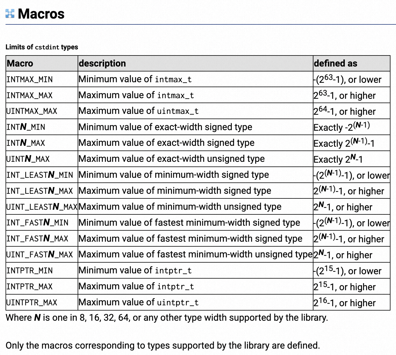 | Type | Bytes | Minimum Value | Maximum Value |